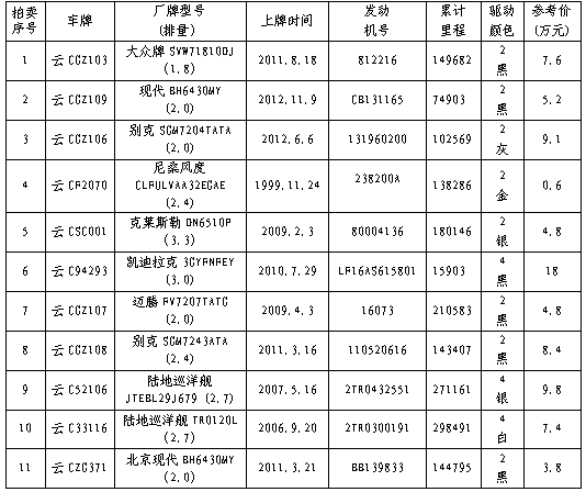 經(jīng)水富縣人民政府批準(zhǔn),公開拍賣水富縣國(guó)有資產(chǎn)經(jīng)營(yíng)有限公司公車11輛。以輛為單位拍賣。相關(guān)事項(xiàng)公告如下: