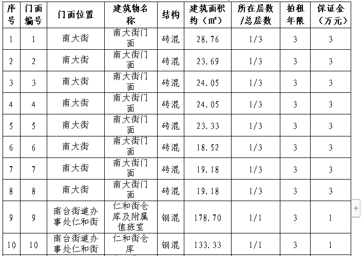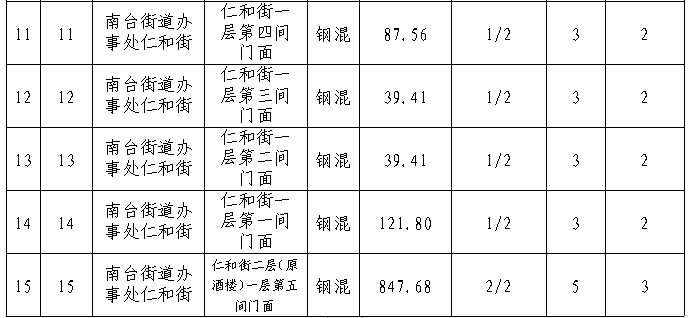 拍租15個國有門面使用權,詳見下表: